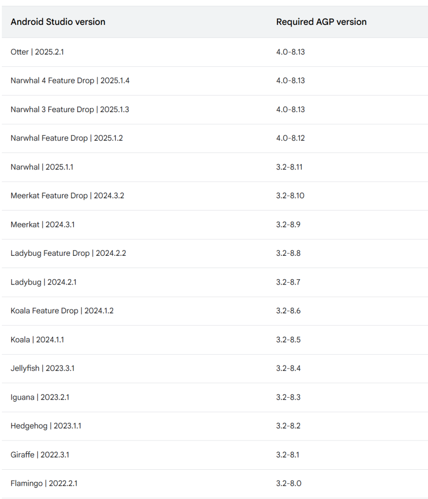 AndroidStudio不停的迭代,但是不能每次能兼容支持老的AGP版本,于是又有了两者的关系。插件版本可以通过手工指定,图中的默认版本未必能够支持你的app所需的版本。所以不要随意采用插件版本,造成一些编译问题。