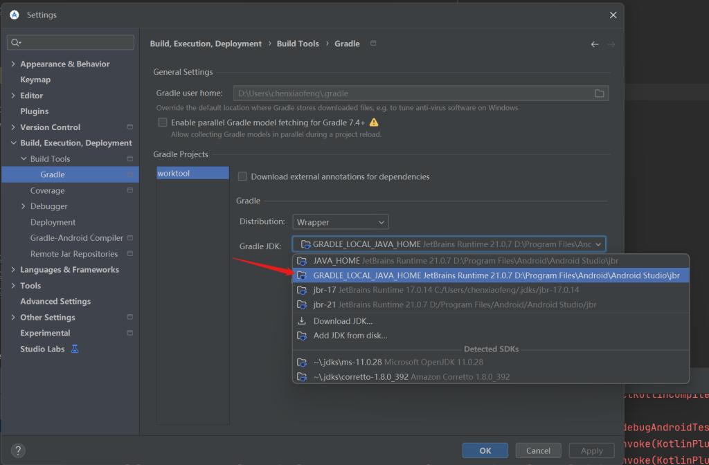 如果按照android studio的提示去升级各种版本,是很麻烦的,涉及到的问题会很多,编码的时候采用的不同kotlin版本,兼容新版本的问题会很多。建议如果不是代码版本差异太多可以按照提示进行操作,如果代码kotlin的版本差异较大,最好手工按照图来指定jdk版本来更正。