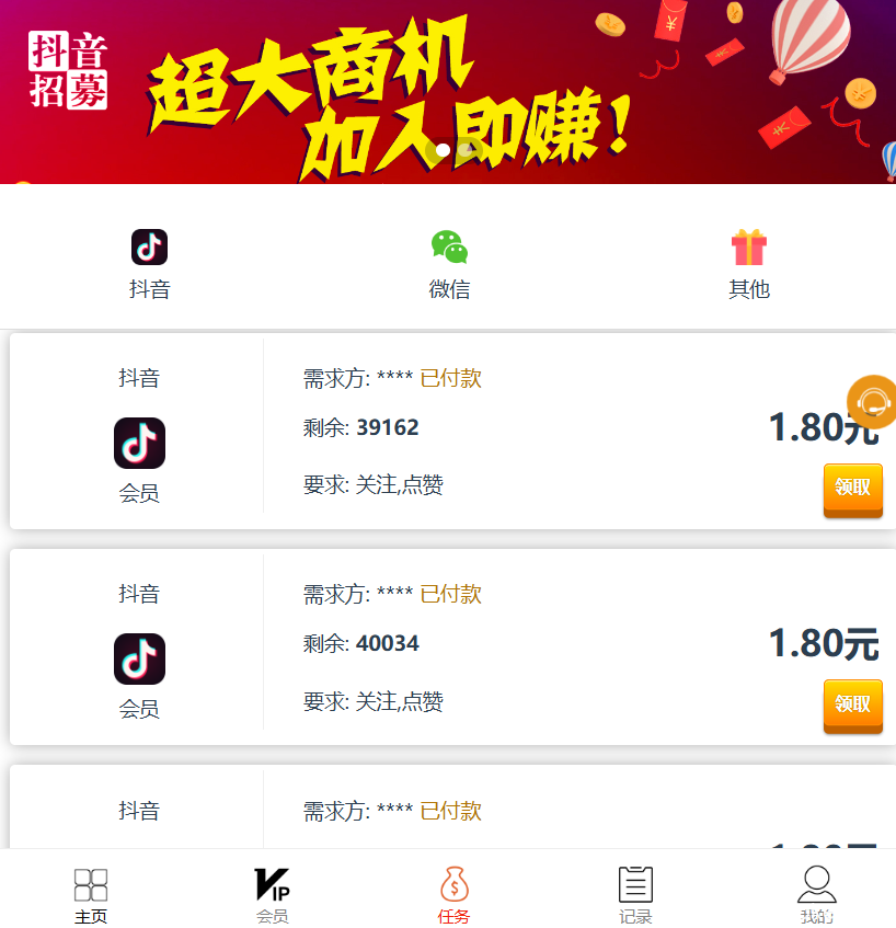 专业开发网 » php抖音短视频点赞任务系统源码,可打包app抖音点赞任务源码,完整可用,源码无加密任务点赞-YM023