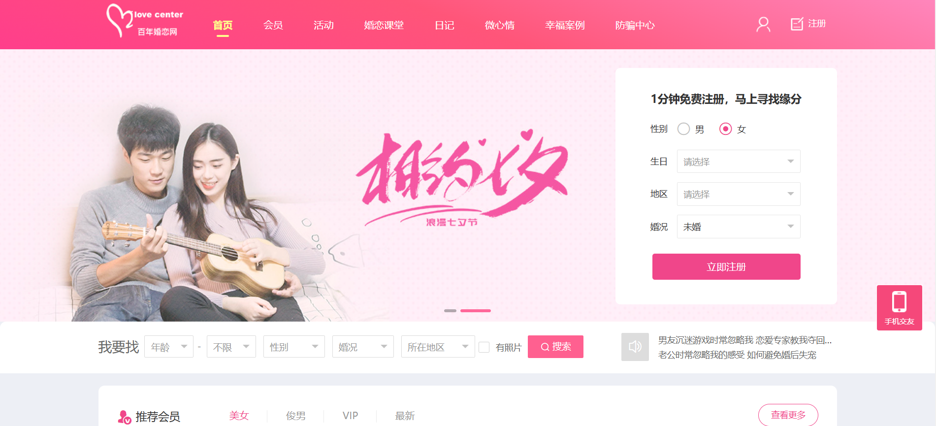 手机版和电脑版婚恋交友系统源码,可打包app的交友婚恋源码,功能强大,界面漂亮婚恋交友源码