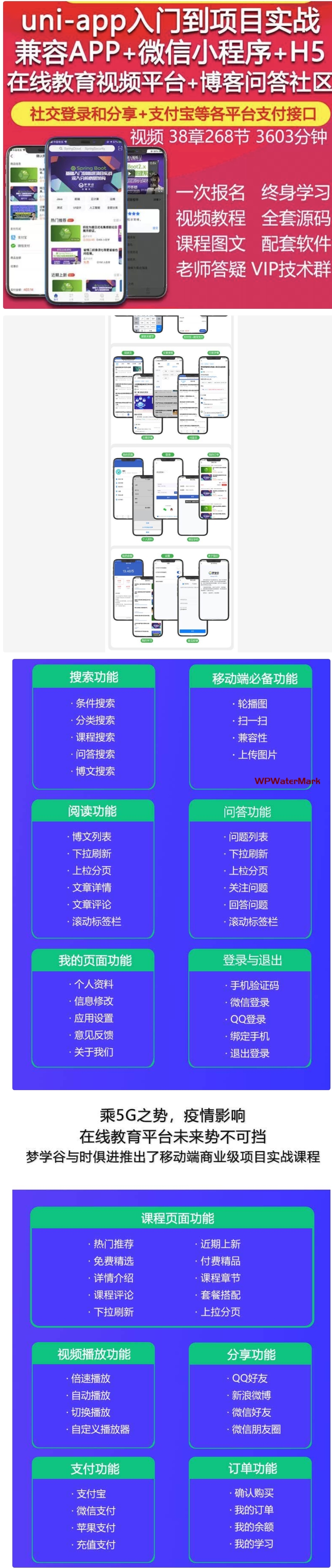 不是平台源码,是一整套uniapp开发的视频教程,对初学混合式开发app,小程序的首选教程。
