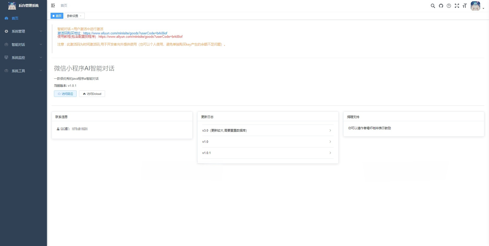 - 一体化管理后台:内置功能完善的后台管理系统,可用于监控对话数据、管理用户访问、配置API参数与进行系统设置,实现精细化运营。