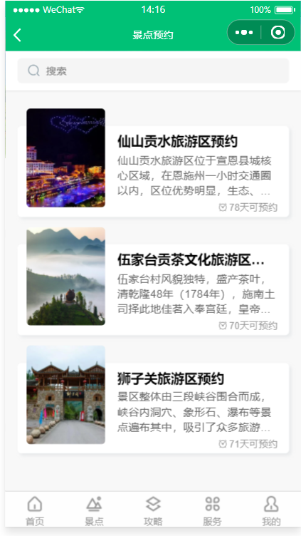 - 景点预约管理:开始/截止时间/人数均可灵活设置,可以自定义客户预约填写的数据项