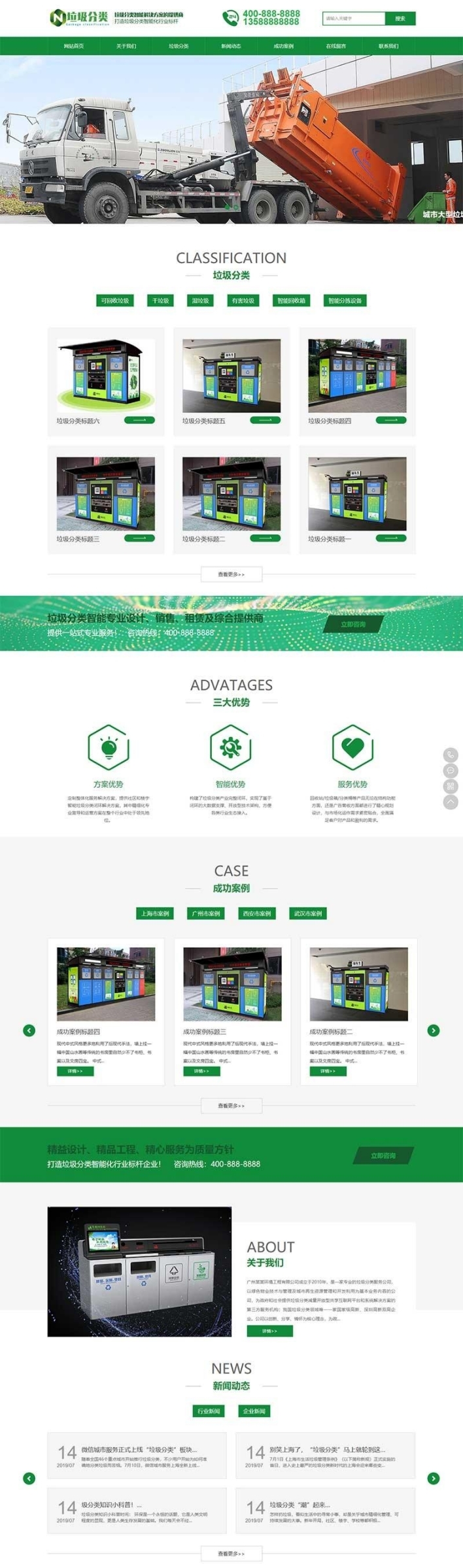 深度定制开发的专业企业级网站模板源码。该模板专门面向环保设备生产、垃圾桶制造、绿色科技产品等行业的公司,旨在快速搭建一个集产品展示、品牌宣传、资讯发布与在线服务于一体的官方网站。它不仅能够有效传达企业的环保理念与产品价值,更能通过强大的后台管理功能实现低成本、高效率的运营,帮助企业吸引潜在客户,获取持续的商业订单。