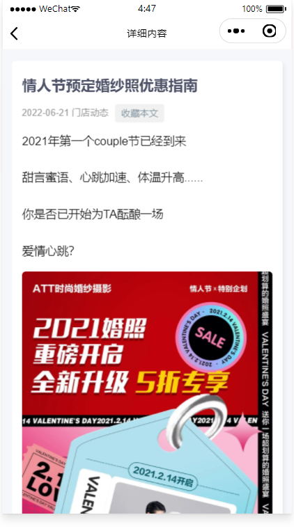 照相馆能够打通与客户的二次消费,比如:为客户免费解决一些问题,为用户推送实用的文章信息,或者周年活动等。