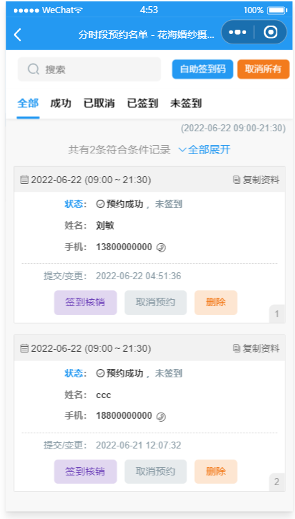 拍摄预约凭证:支持线下到场后校验签到/核销/二维码自助签到等多种方式