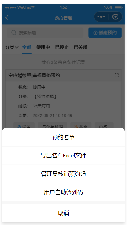 详尽的拍摄预约数据:支持预约名单数据导出Excel,打印