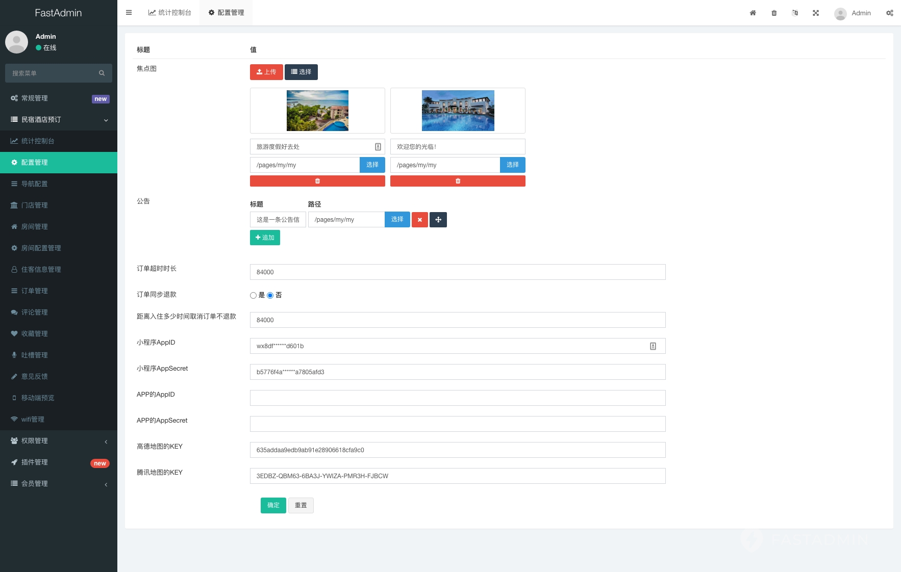 2026年优质php源码下载 » YM419-2026年fastadmin酒店民宿预定H5小程序管理系统源码,程序支持支WIFI 连接 / 吐槽 / 周边信息功能民宿酒店预约源码