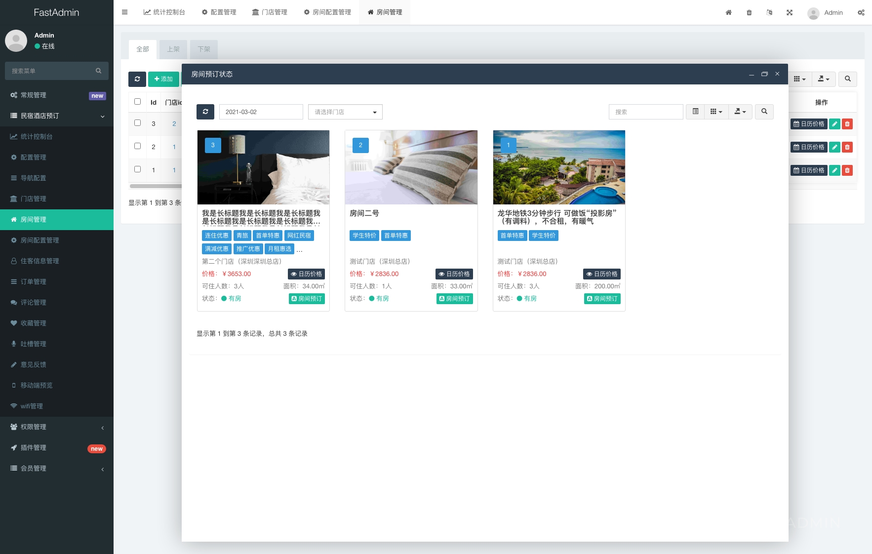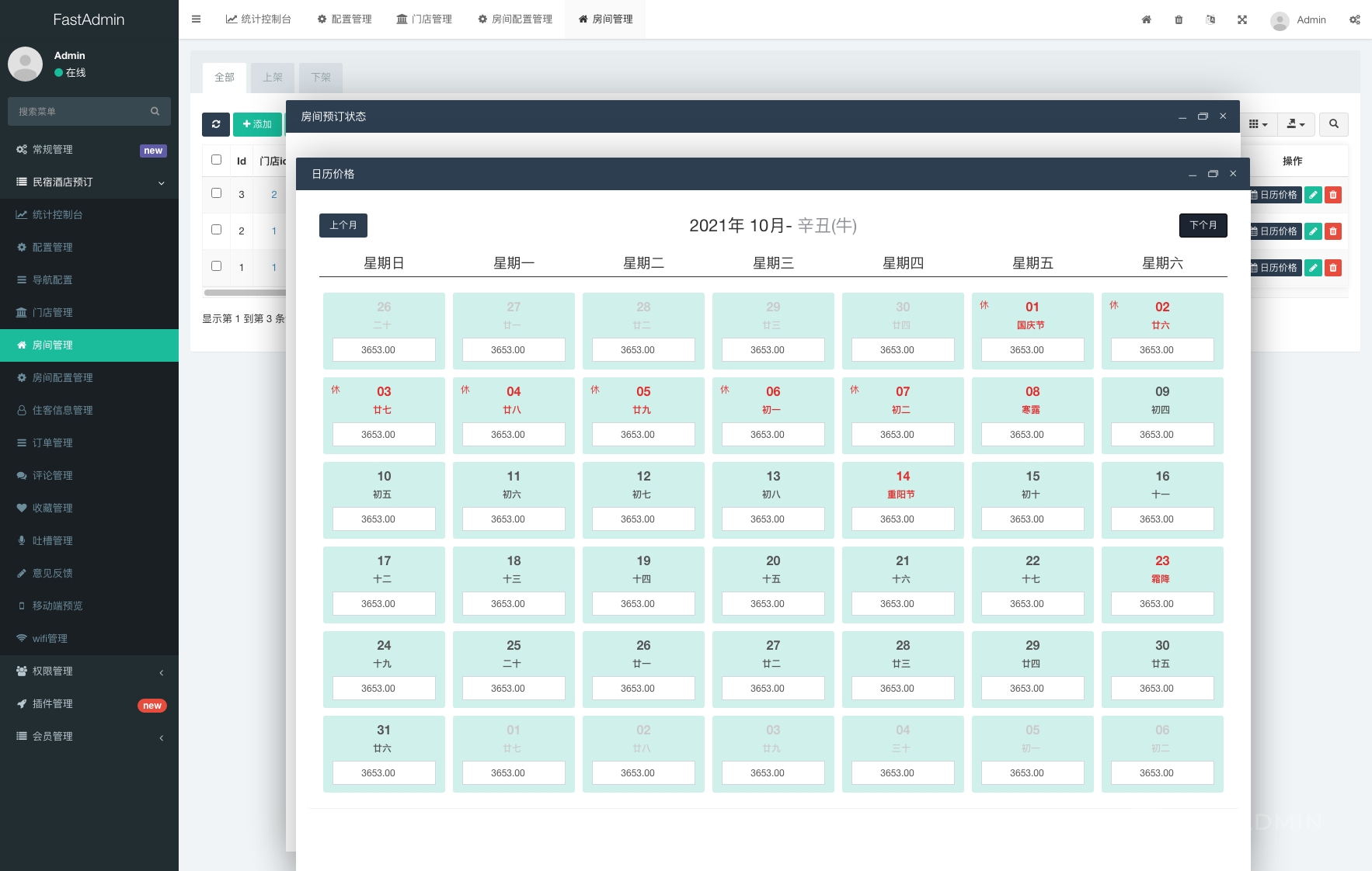 它把民宿日常需要的功能都打包好了,主要包括这些模块: