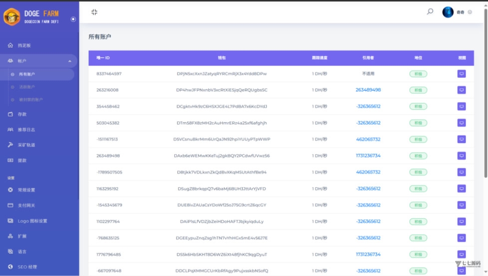 admin APP源码 投资理财 9天前 YM424-php狗狗币DeFi矿场/DeFi区块链/流动性矿池/存币生息 简介: 全新PHP系统开发,支持添加多语言,默认是英文版,截图是浏览器自动翻译 独家狗狗币DeFi农场,只需要输入钱包地址即可存币生息 图片: 暂无优惠当前隐藏内容需要支付2000积分已有0人支付 支付查看 客服 Q Q: 2047879076 微 信 :wx_xiaochengxu_kaifa2026年优质php源码下载 » YM424-php狗狗币DeFi矿场/DeFi区块链/流动性矿池/存币生息