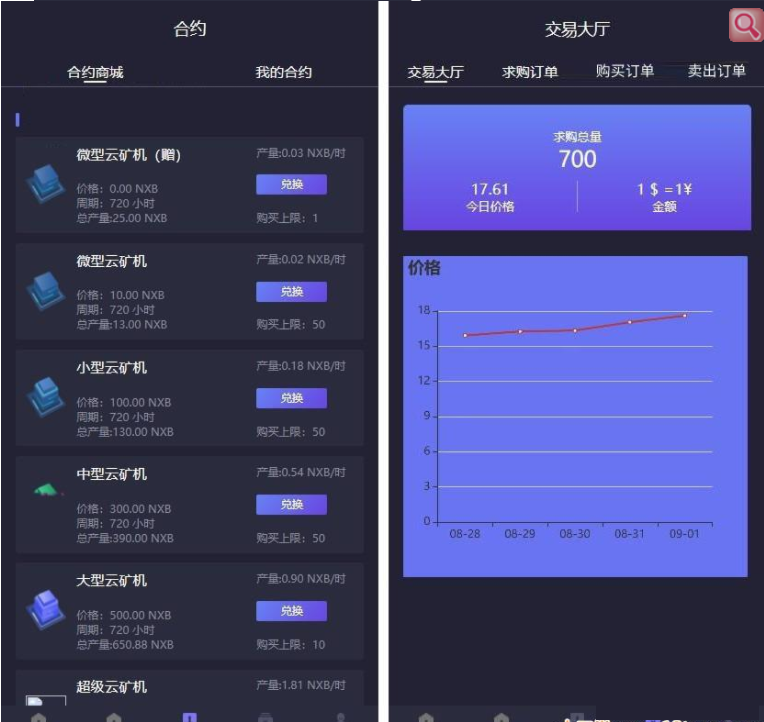 合约大厅实时兑换矿机,我的合约一键领取矿机产量