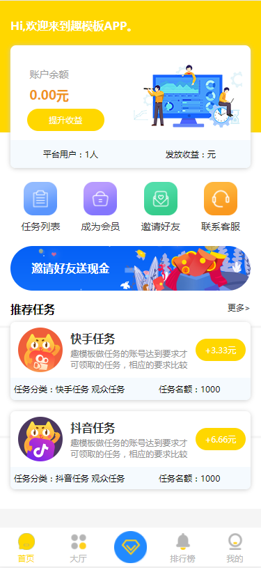 admin APP源码 威客任务 8天前 YM455-2026年php版本全新界面抖音短视频点赞赚钱任务系统源码 新版短视频点赞源码 抖音快手点赞任务 抖金源码可封装APP 暂无优惠当前隐藏内容需要支付2500积分已有0人支付 支付查看 客服 Q Q: 2047879076 微 信 :wx_xiaochengxu_kaifa2026年优质php源码下载 » YM455-2026年php版本全新界面抖音短视频点赞赚钱任务系统源码