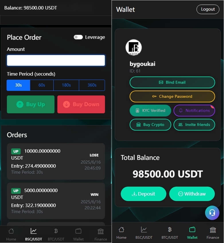 虚拟货币微交易投资理财源码/现货交易+杠杆交易+完美K线控制+完整用户输赢控制+代理/前端html+后端PHP