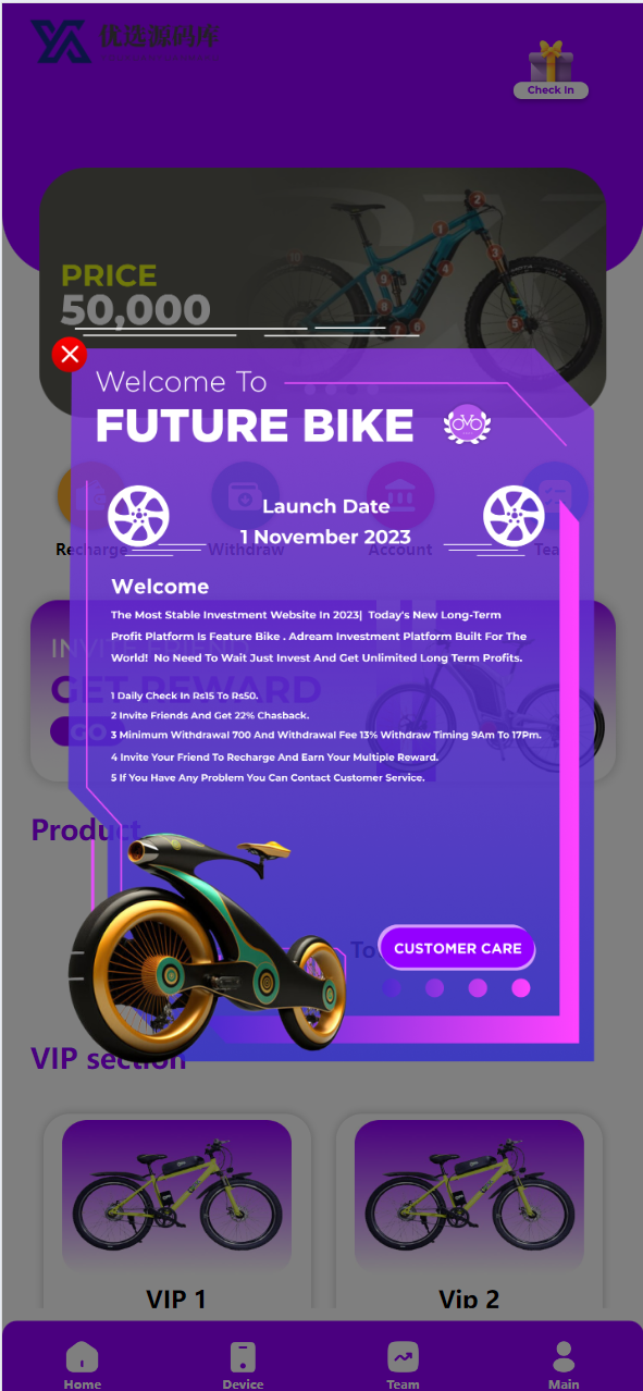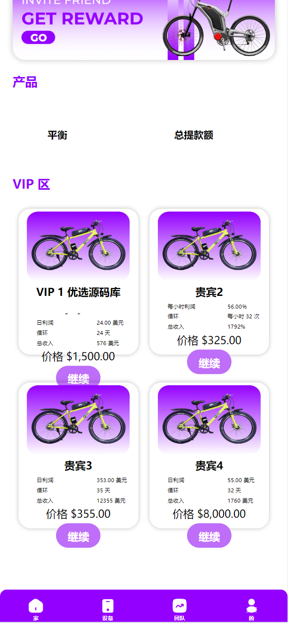 海外自行车投资理财源码/UI精美 团队分佣 多语言 单车共享投资源码