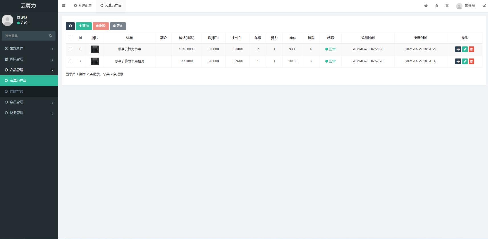 后台自行添加售卖矿机/云算力 参数和收益比率和详情说明