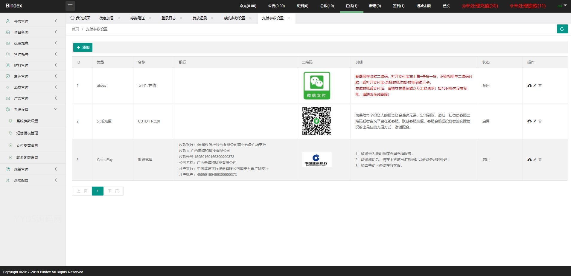 新功能:在线客服、在线会员、优惠加息、券券赠送、虚拟币充值等功能