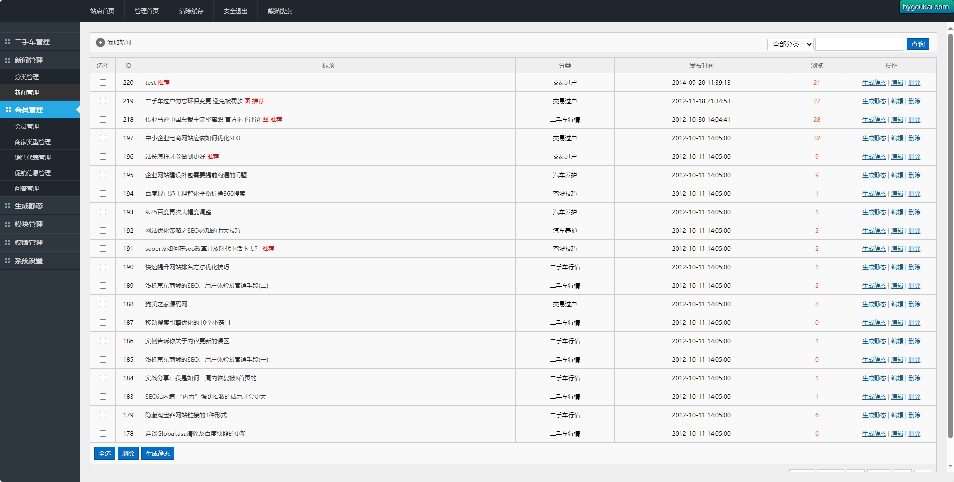 4.后台管理地址为://您的域名/adm.php,导入数据库以后的管理员用户名为admin 密码:bygoukai.com
