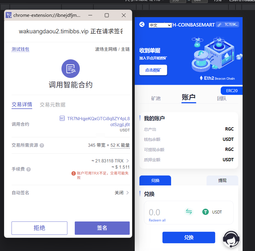RC20+ETH双链授权挖矿质押源码/多语言/盗U秒U/TG机器人自动通知/假鱼苗