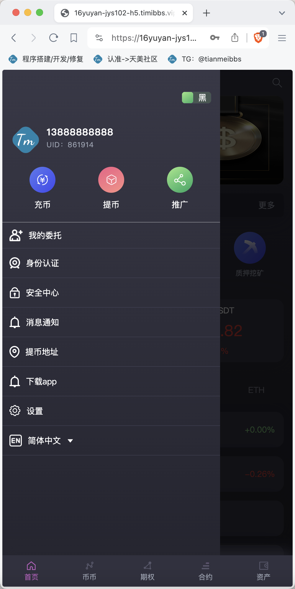 多语言交易所/合约交易+期权交易+币币交易+申购+矿机+风控/前端wap+pc纯源码/带搭建教程