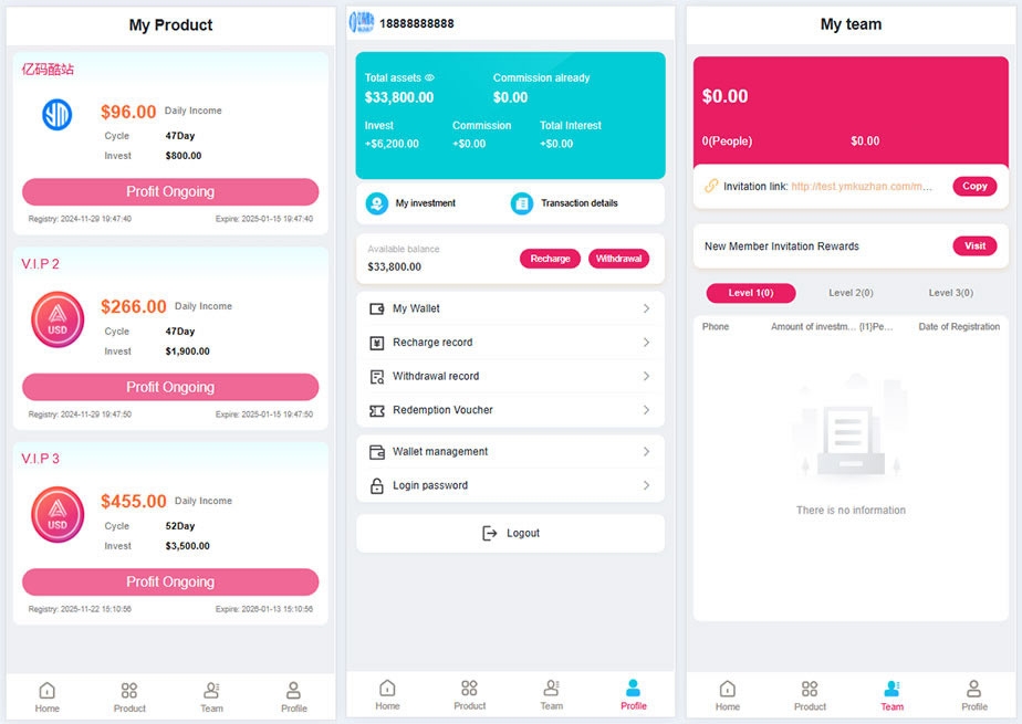 支持分销推广:内置分销功能,帮助用户更好地推广和分享投资理财产品。