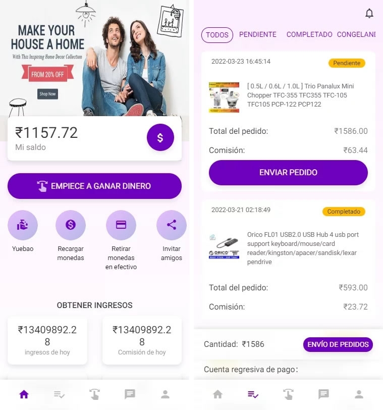 1.会员自动匹配订单,获得佣金收入。