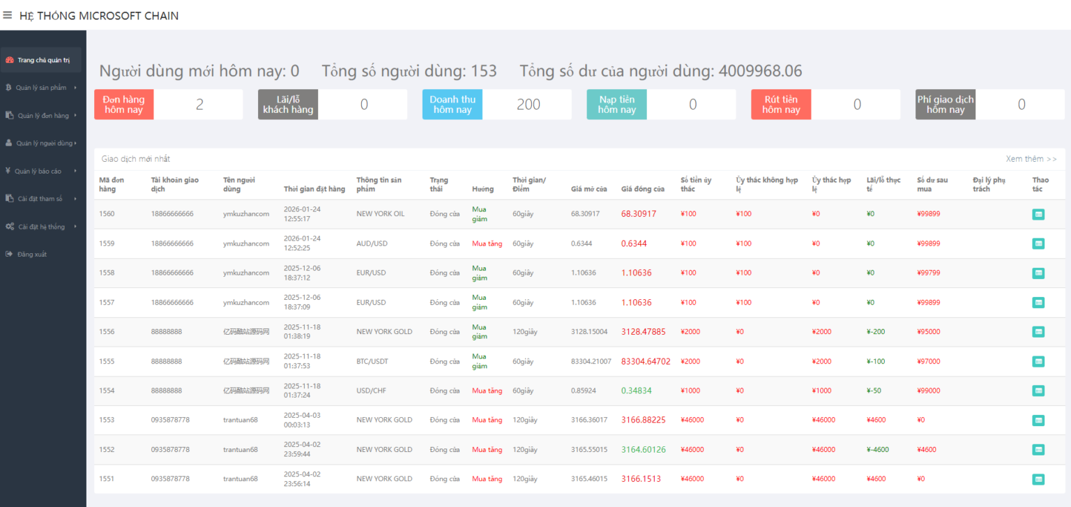 系统支持 12 种语言切换,前后端默认越南语,适合做海外市场项目或多语言金融平台。当前交易品种已集成 外汇、加密货币、贵金属 三大类资产。
