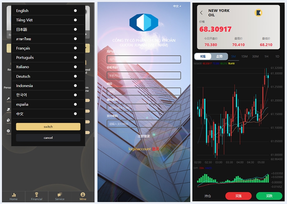国泰君安证券风格二次开发的多语言微盘微交易所系统源码,后端基于 PHP + ThinkPHP 架构运行,整体UI偏专业金融风,适合搭建外汇微盘平台、虚拟币时间盘系统、贵金属微交易所项目或投资模拟盘站点。