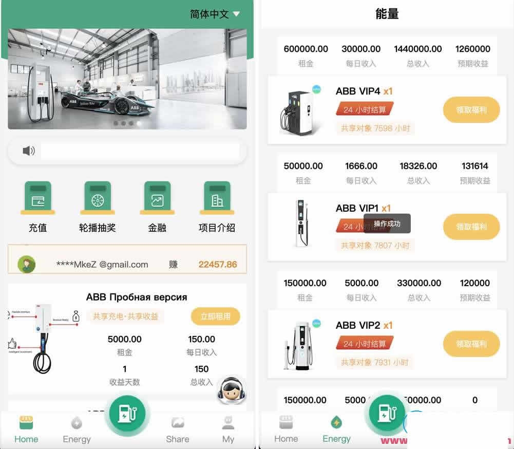 ABB双语言表达共享充电宝投资理财源代码/五级分销返利+地图显示模式/vue编译程序