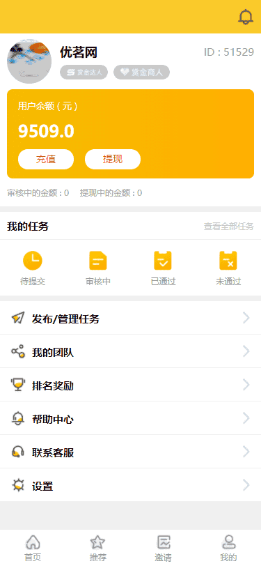 2026年优质php源码下载 » YM900-2026年ThinkPHP仿悬赏猫任务平台黄色UI界面完美运营版源码,可直接封装APP威客任务平台源码