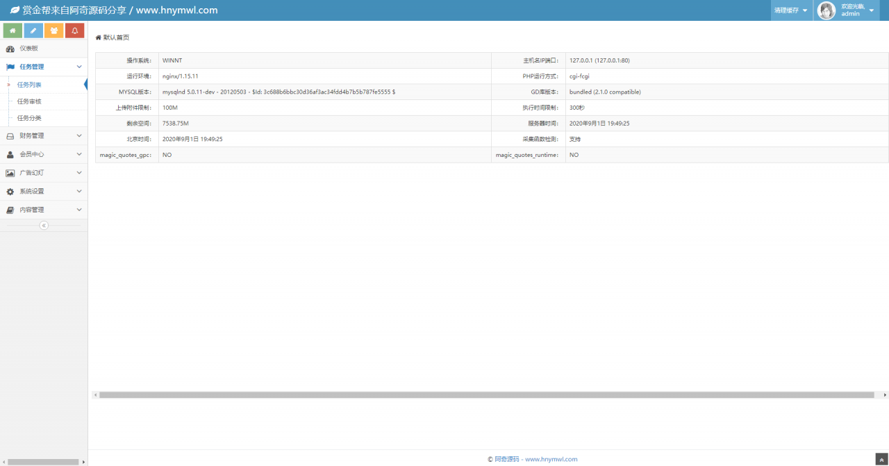 亲测环境:Nginx1.16.1+PHP5.6+Mysql5.6