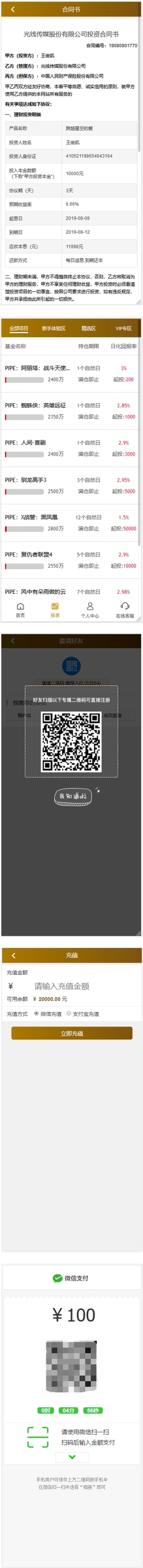 YM915-全新UI影视金融理财系统,电影投资分红项目,电影众筹票房分红源码,短信修复+免签支付+搭建视频