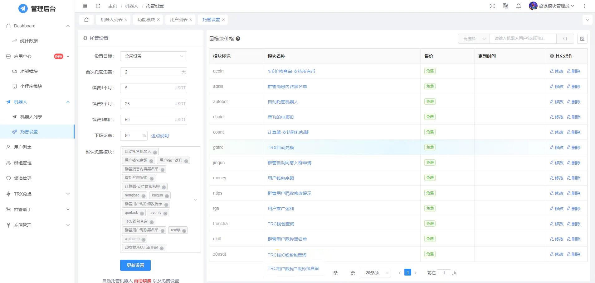 admin 区块链-虚拟币-交易所 实用工具软件 通讯管理 1天前 YM919-全功能tgbotTelegram机器人多功能有后台版源码 全功能tgbot/telegram机器人多功能有后台版源码-打包好的可以直接上手 trx兑换 闪兑 关键字监控 群管 usdt监控 余额查询 推广分享 等几乎常见的tg机器人功能都有 暂无优惠当前隐藏内容需要支付2000积分已有0人支付 支付查看 客服 Q Q: 2047879076 微 信 :wx_xiaochengxu_kaifa2026年优质php源码下载 » YM919-全功能tgbotTelegram机器人多功能有后台版源码