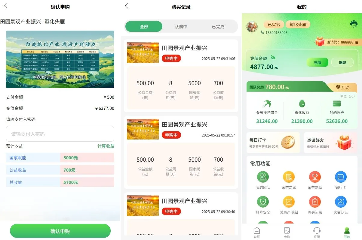YM933-定制开发uniapp投资理财系统/投资认购/振兴产品投资/三级分销