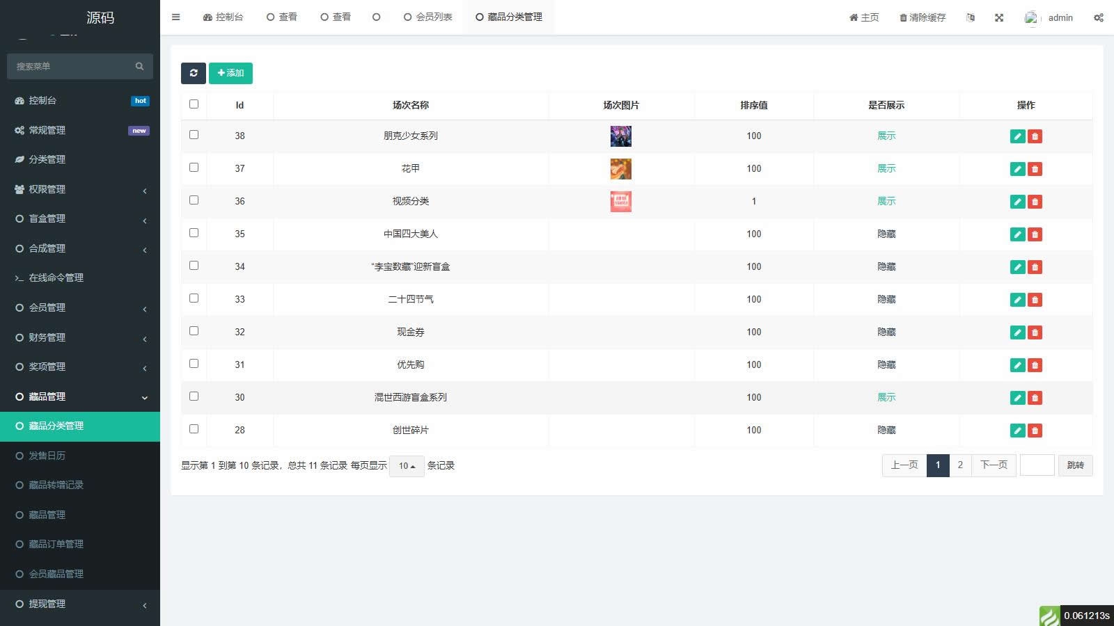 5.盲盒:购买盲盒随机抽取藏品,后台可设置盲盒中的奖品