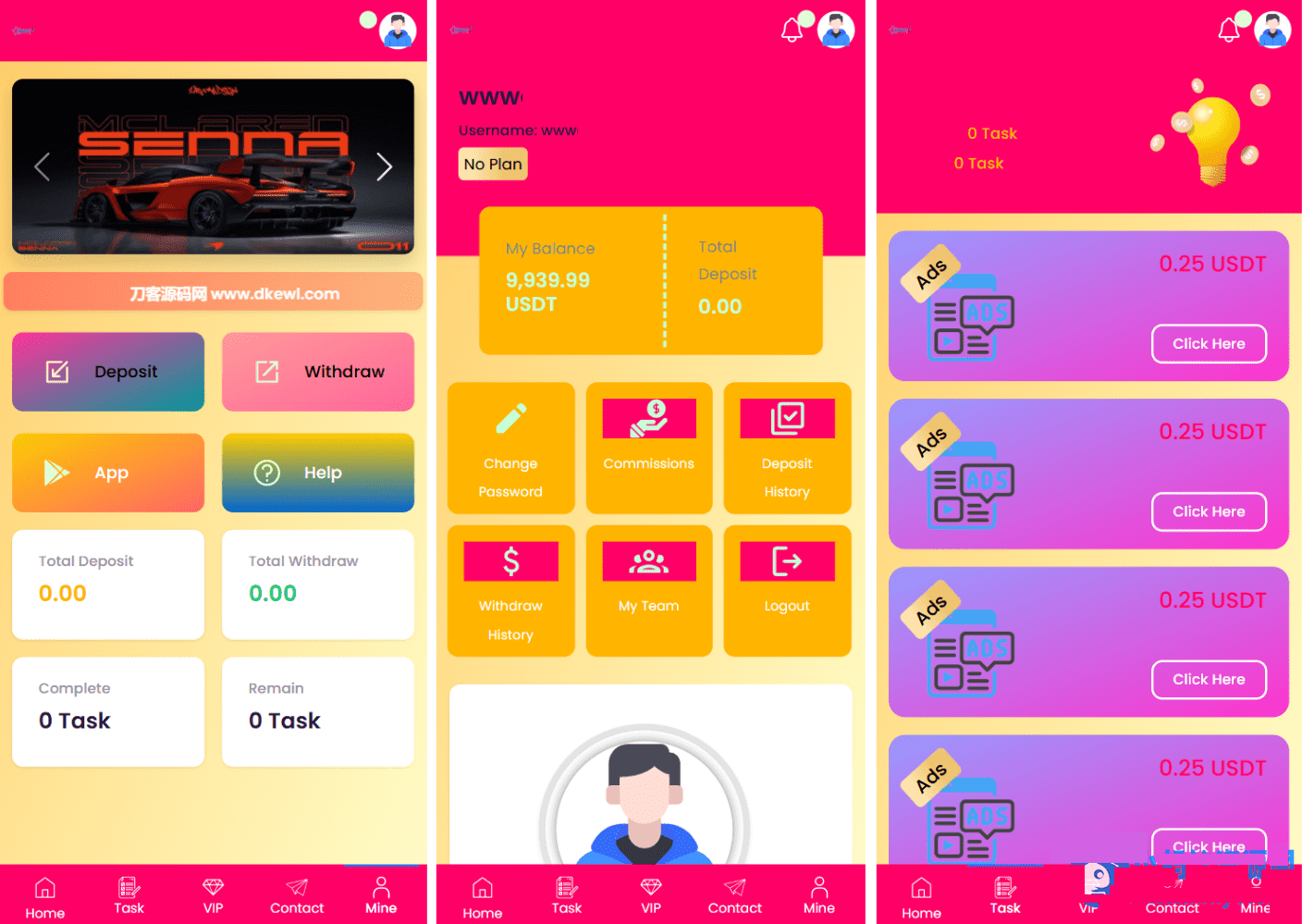 投资理财新模式,通过观看广告获取佣金收益,观看广告次数是根据VIP等级来的,等级越高价格越贵,看广告的次数也就越多