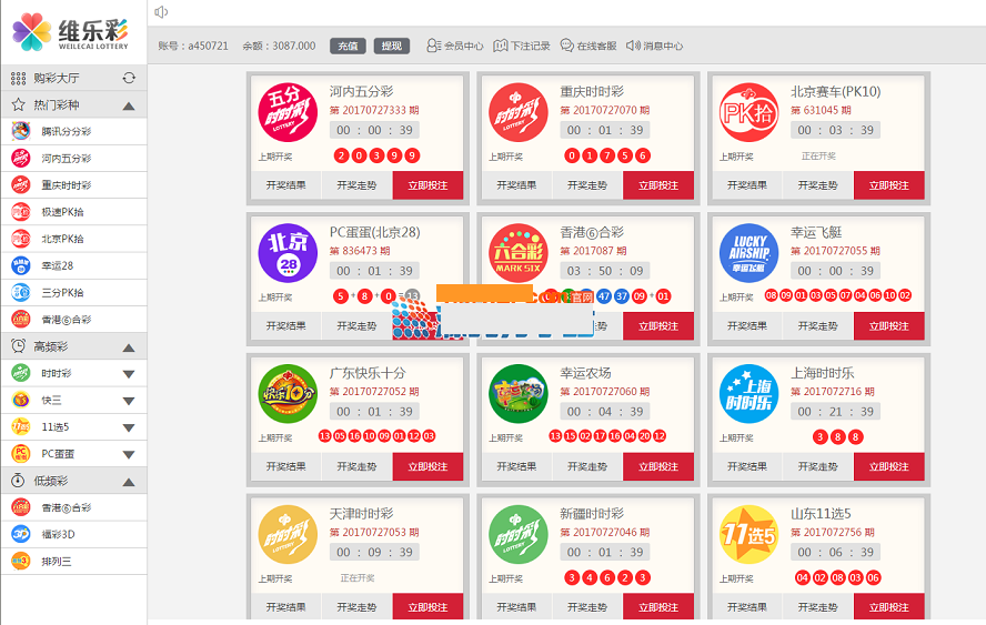 市面上很火的一种彩票平台风格,目前有三十多款彩种,包含各种系统彩等等。