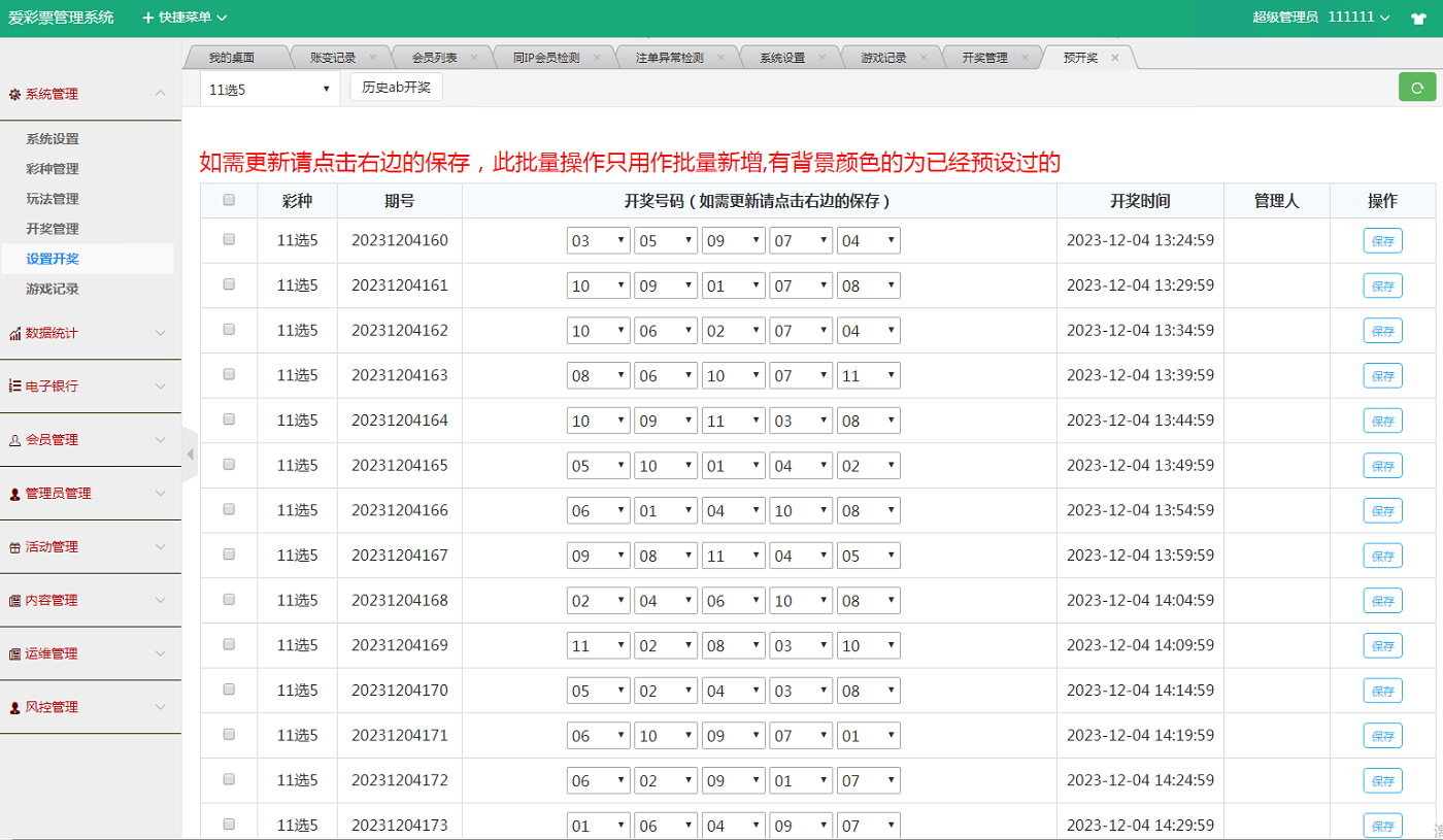 增加了多个系统六合彩、澳门六合彩,后台可设置系统彩控杀率,
