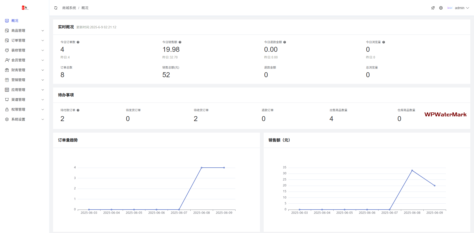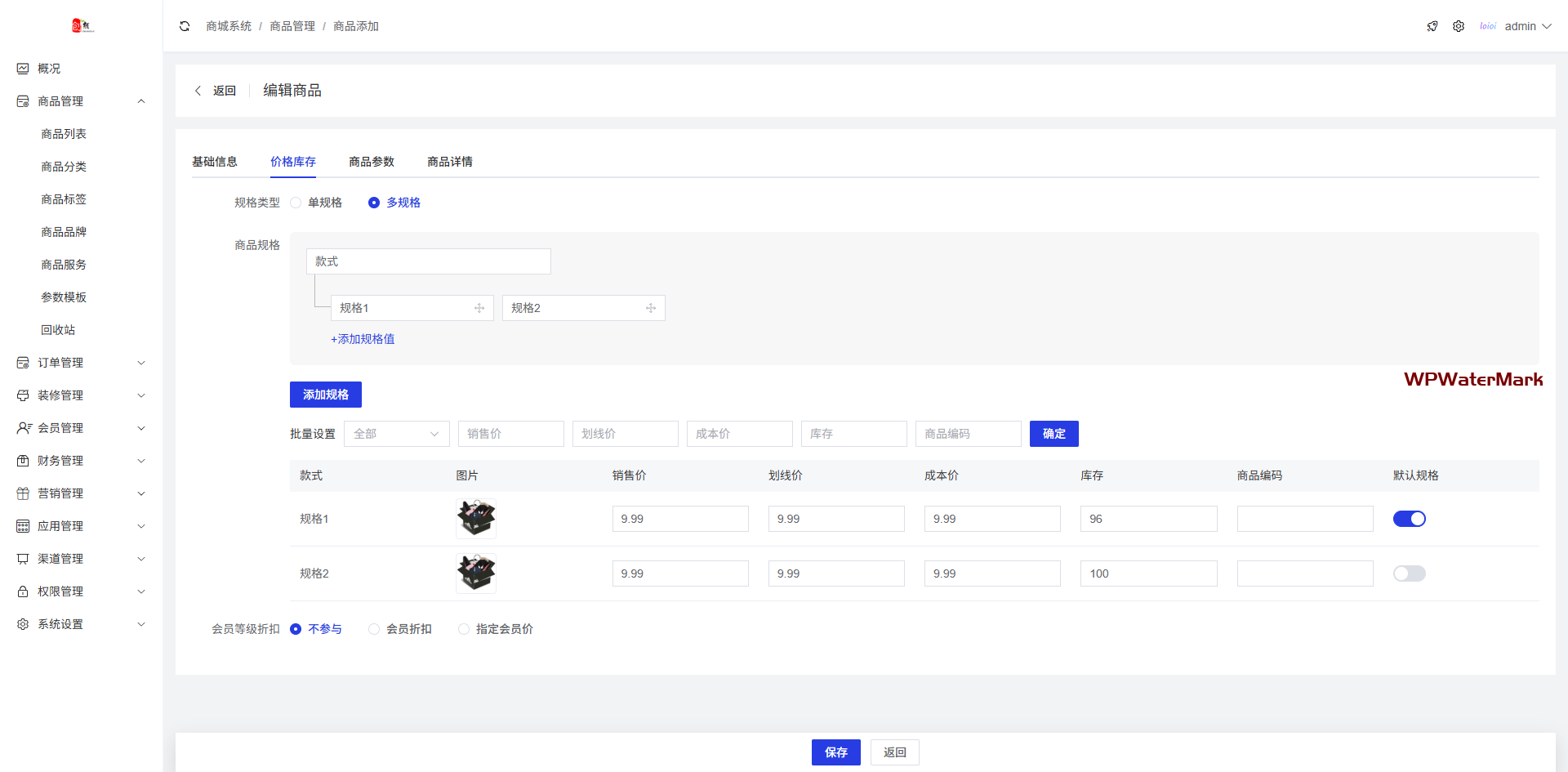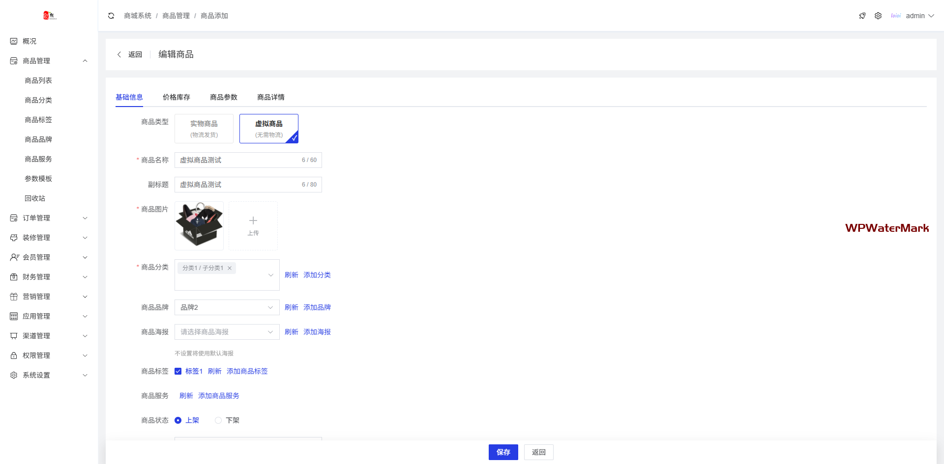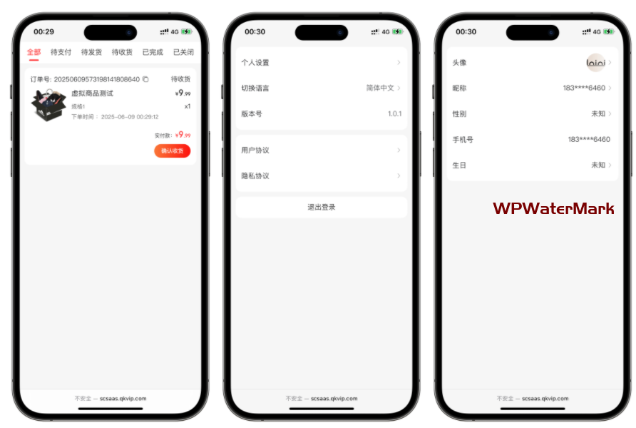 商品类型支持实物商品和虚拟商品,支持多规格,带有商品评论功能,订单支持申请退款和批量发货,商品带海报推广功能