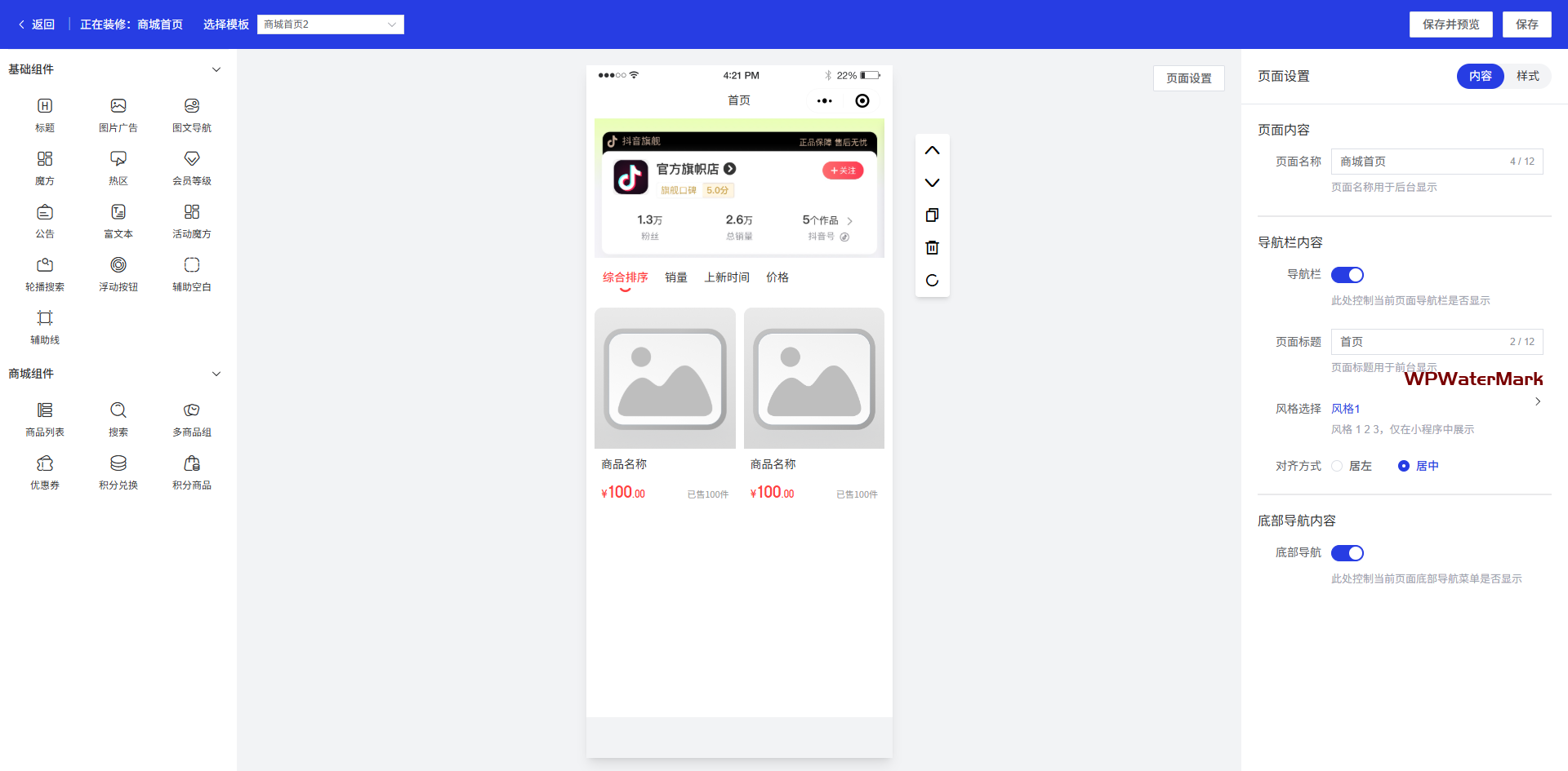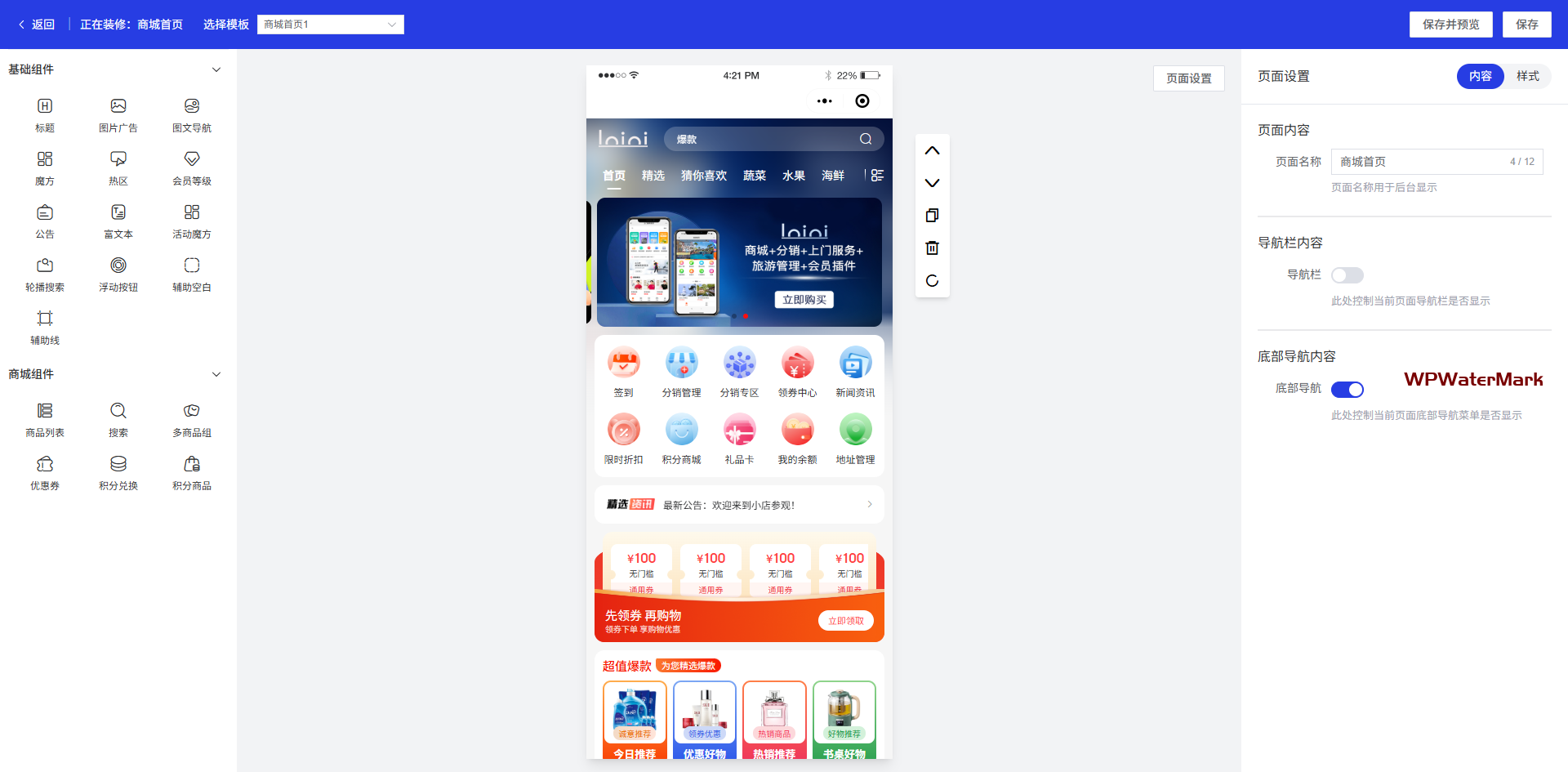 带有强大的装修管理功能模块,可对用户端界面进行高度DIY