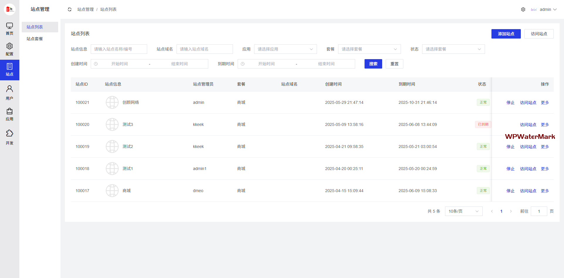 分站站点支持设置到期时间,单独设置分站域名