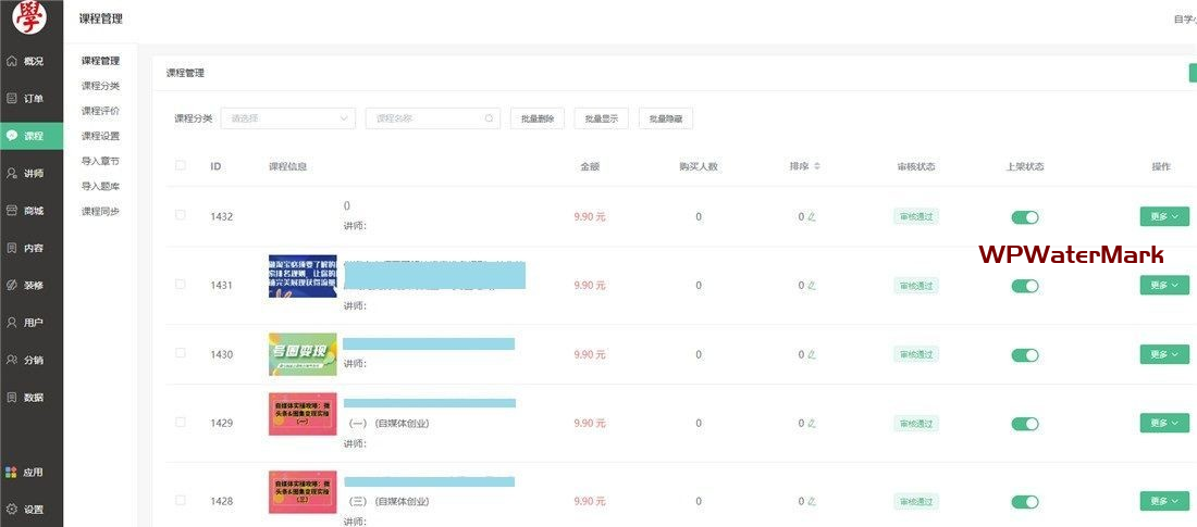 YM1228-知识付费阅读小程序源码,前端+后台源码,带有代理,分销,课程资源更新等等功能