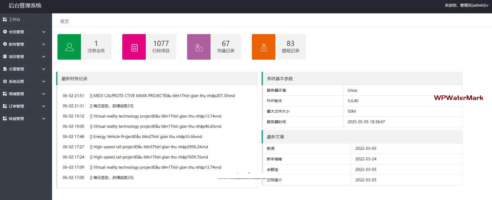 YM1269-多语言版投资理财系统虚拟产品投资项目、每日返利、带积分商城