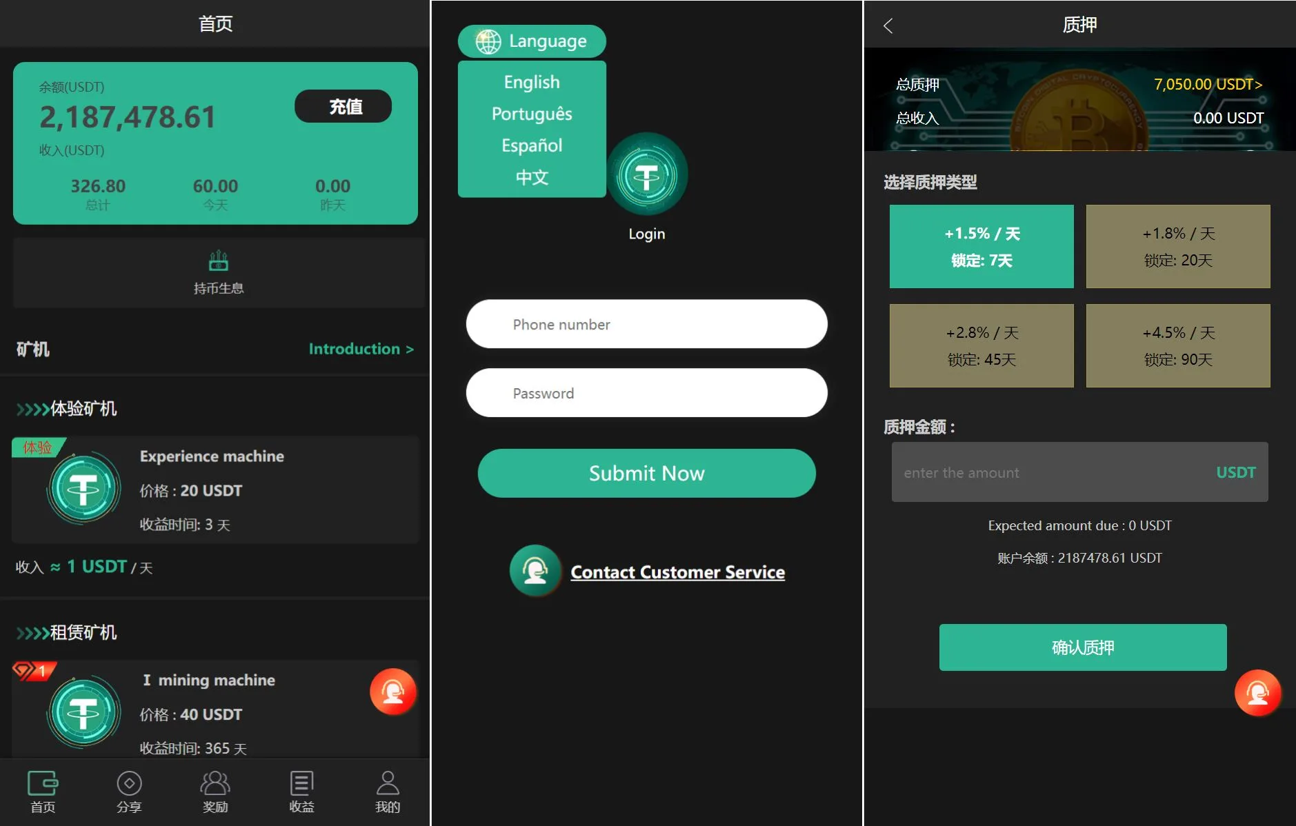 admin APP源码 区块链-虚拟币-交易所 威客任务 9小时前 YM1282-多语言矿机源码usdt矿机usdt质押生息拉新任务 多种语言:英文、西班牙、葡萄牙、中文 系统附带拉新奖励任务,完成团队任务即可获得usdt奖励 带usdt质押生息功能,后台可设置时间跟奖励 客服 Q Q: 2047879076 微 信 :wx_xiaochengxu_kaifa2026年优质php源码下载 » YM1282-多语言矿机源码usdt矿机usdt质押生息拉新任务