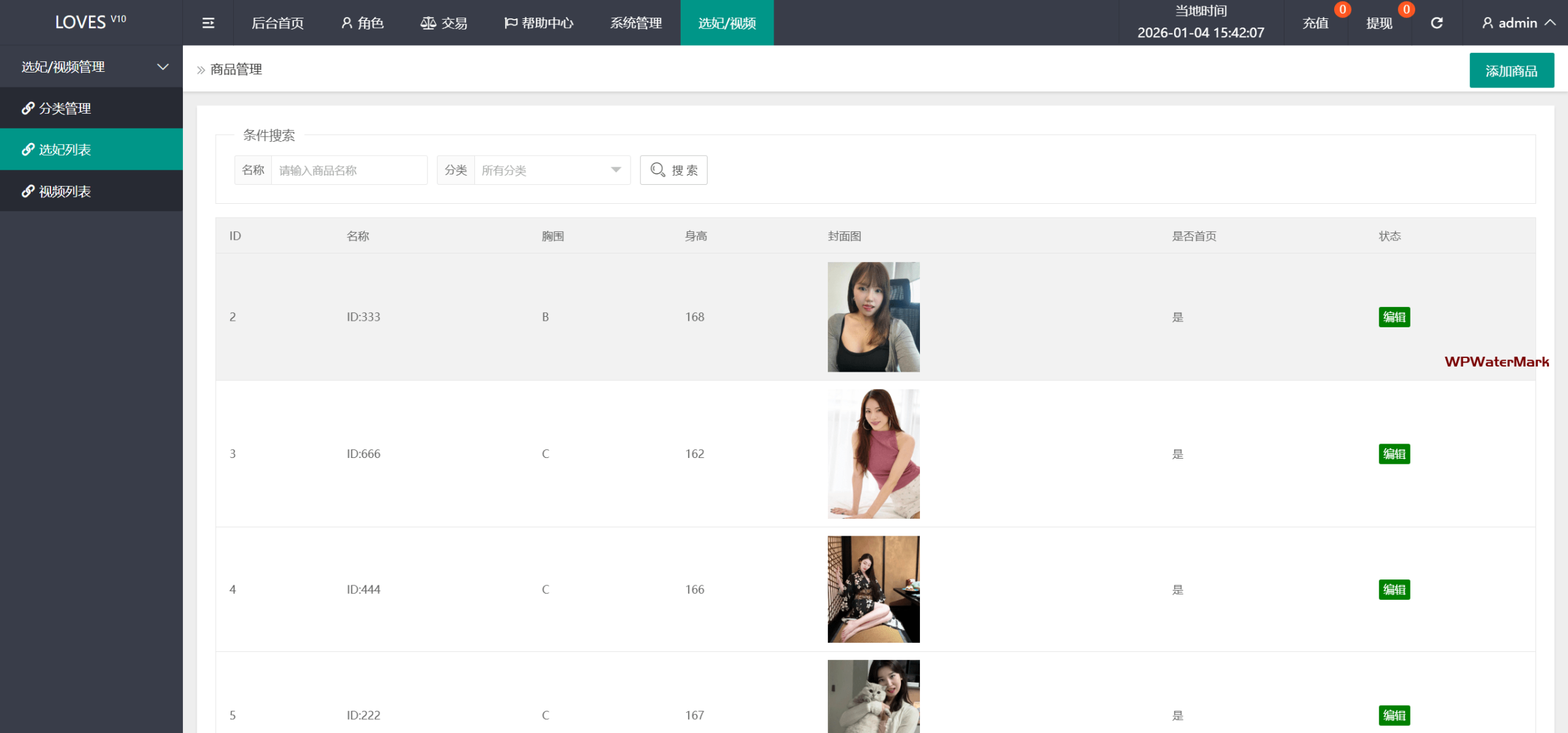 后台可以添加公主选择、颜色视频数据,也可以写一个自动更新视频脚本,现在前端视频可以正常观看,但封面图片无效