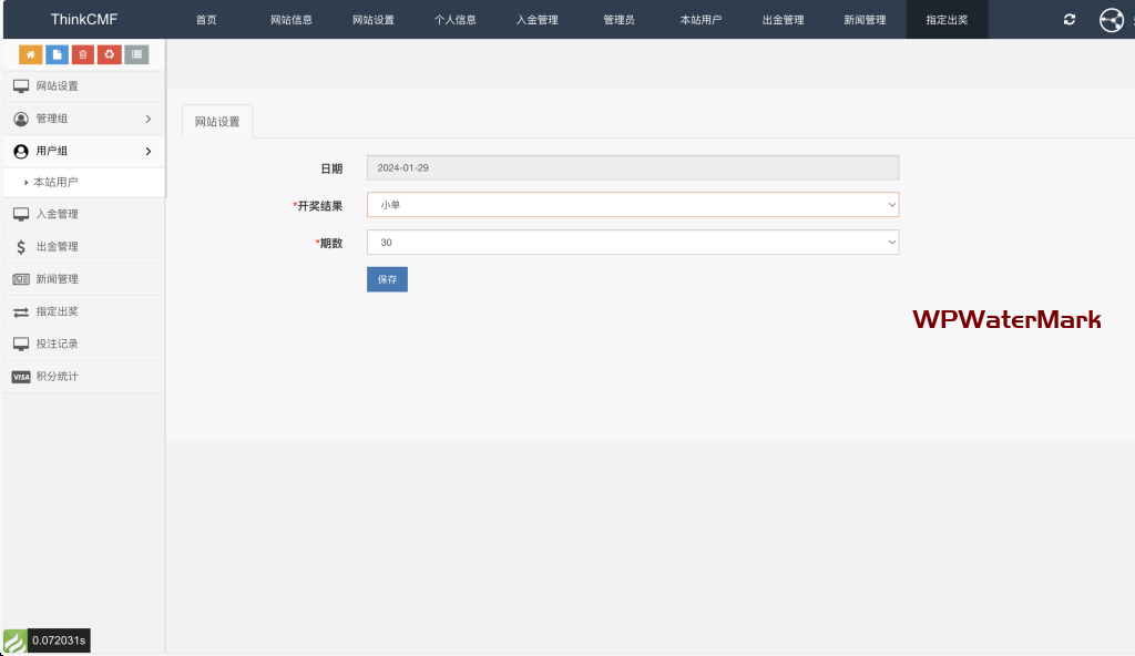 后台可以预设某一期的开奖结果,没有测试这个功能