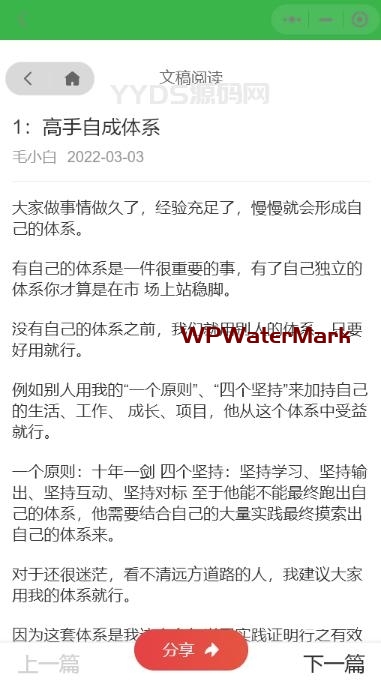 YM129-微信原生电子书类小程序,可做卖课程小程序,前后台完整带教程