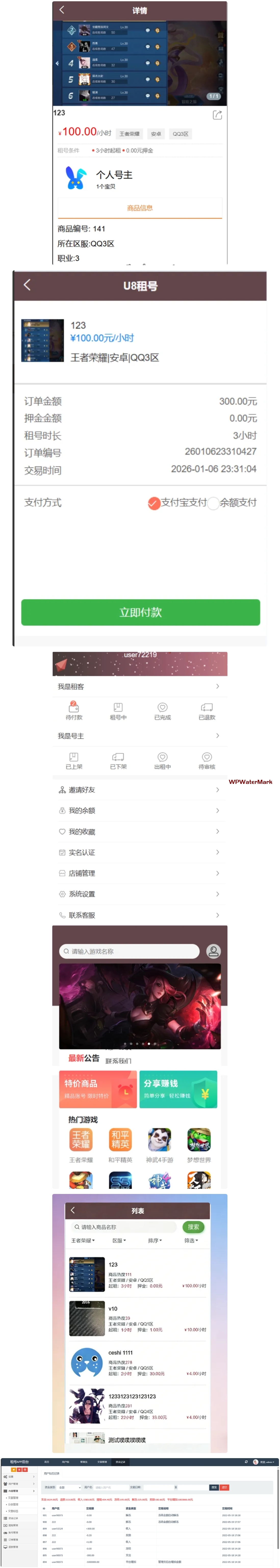 支持多角色管理、订单追踪与安全交易,适用于各类虚拟物品租赁场景,助力企业快速搭建专业化的账号出租平台:提升运营效率与用户体验。